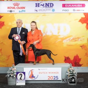 Afgelopen zondag (30 november 2025) heeft Marianne van Dongen met haar “Velvet Looks Medea with a Magical Touch” een uitzonderlijke prestatie neergezet op de grootste hondenshow van Nederland. Op The Dutch Winner Show werd zij reserve beste in de rasgroep terriërs. Marianne, van harte gefeliciteerd en dank je wel, je hebt hiermee ons prachtige ras (nogmaals) fantastisch op de kaart gezet!